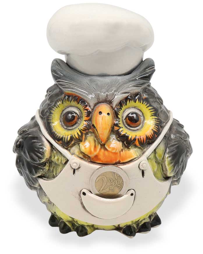 Keramik Spardose Eule Koch 16cm