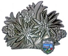 Magnet Metall Alpenblumen mit Kleinwappen 6x7cm