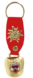Schl. Anh. Glocke Lederb. rot Edelweiss messing 9x3cm